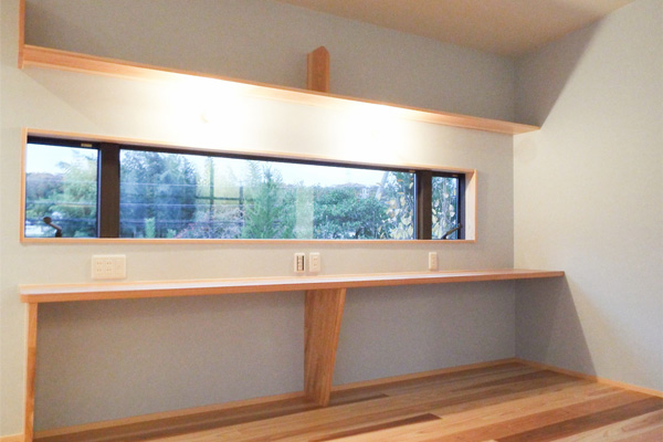 日本の建築物の居室は、裸足の文化です。玄関で靴を脱ぎ、床に寝転ぶこともあり、裸足で家中を歩きまわる。夏は涼しく、冬は温かく感じるからこそできることで、コンクリートの床ではそうはしません。又、自然に形成された木目が、日本人的に美しく・安らぎを与えてくれます。 そんな木を手の届くところにたくさん用いた家だから小さな子供たちがすこやかに育ってくれる。